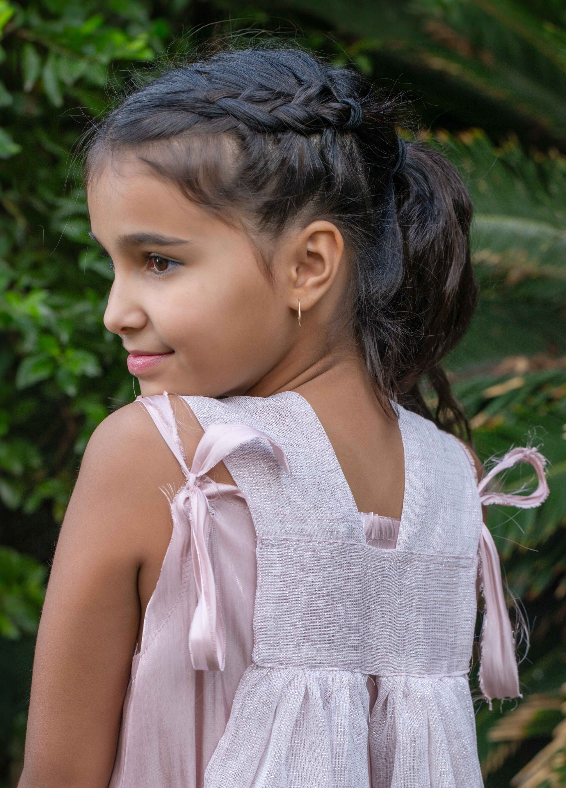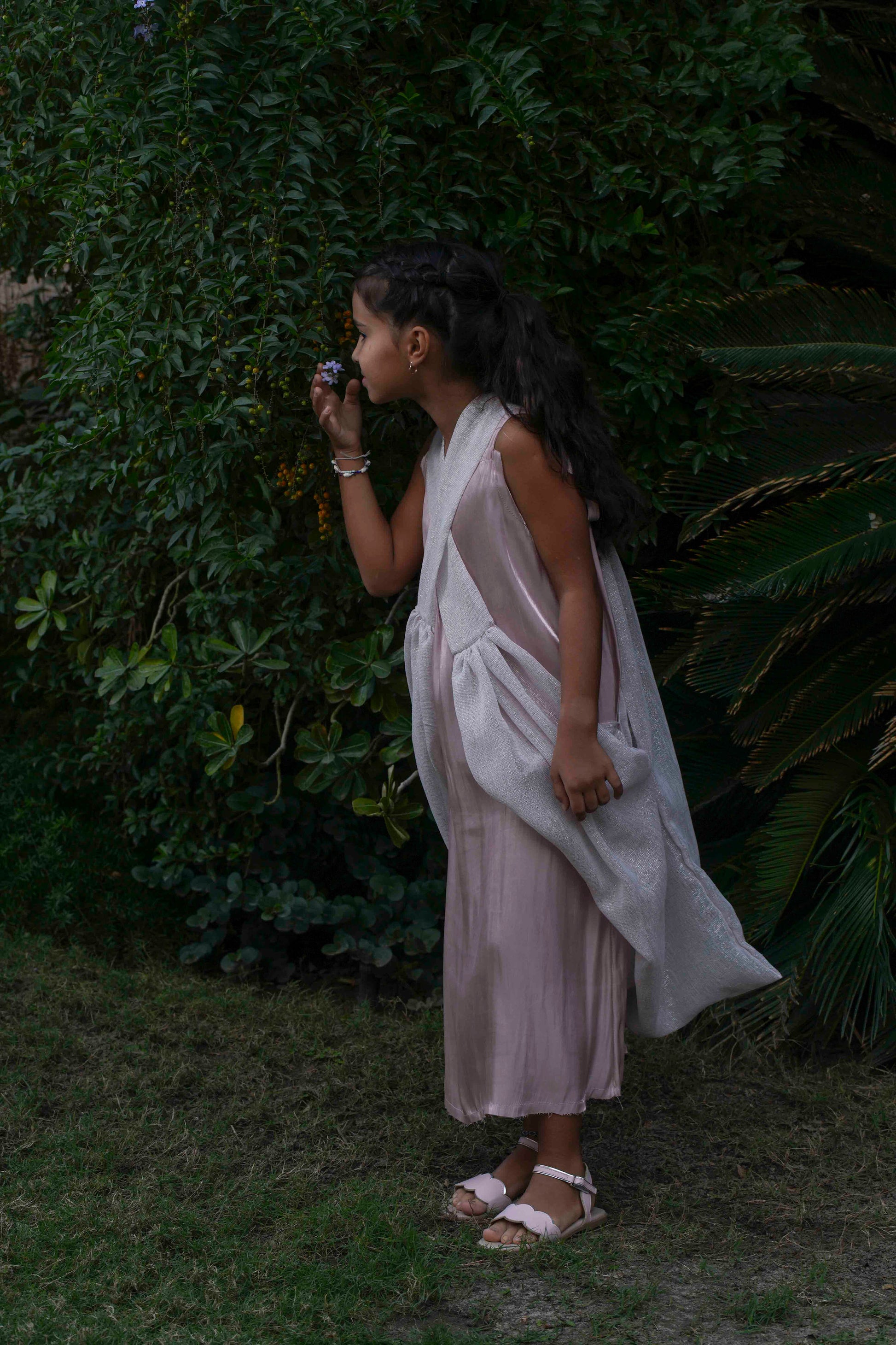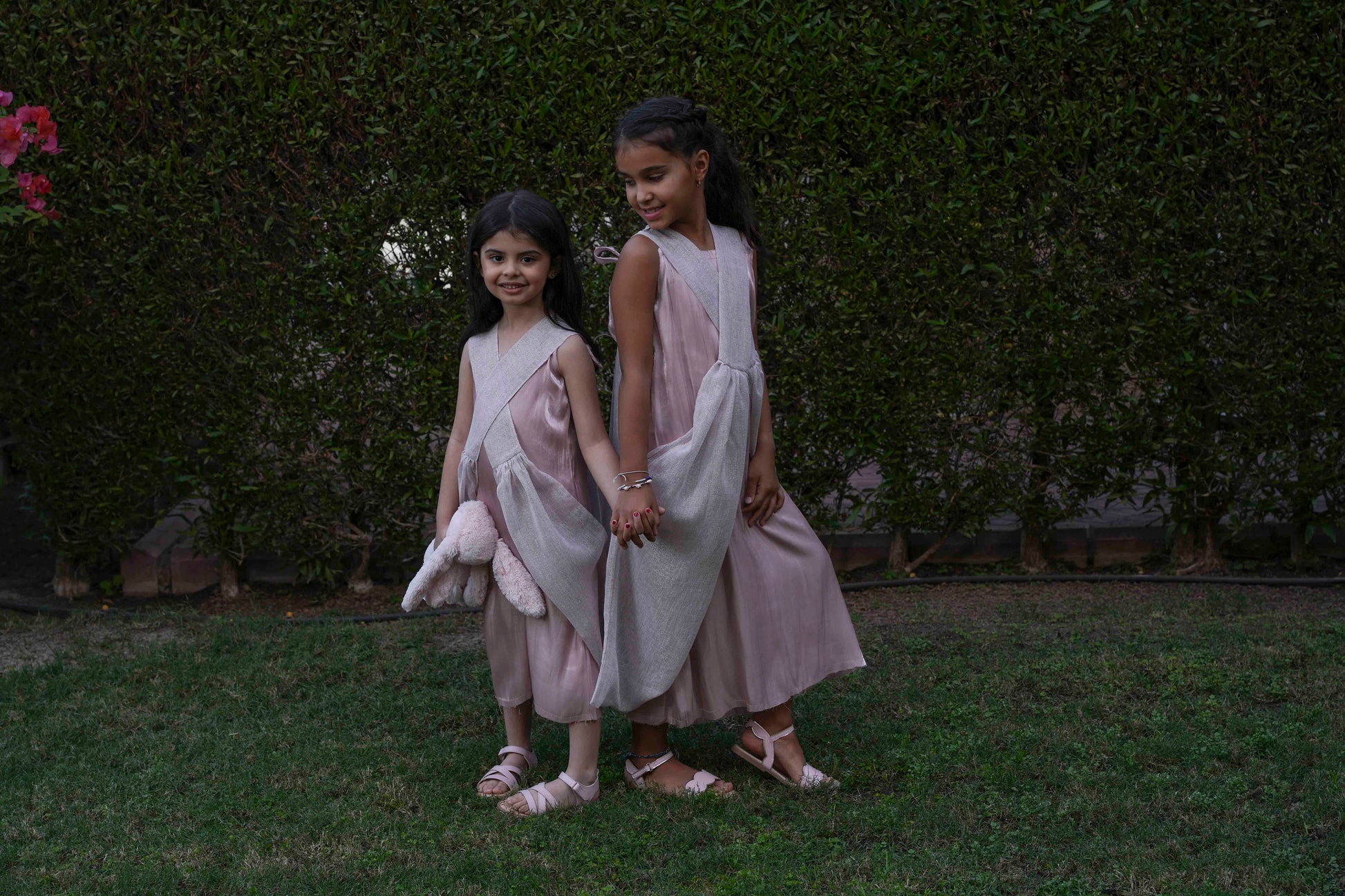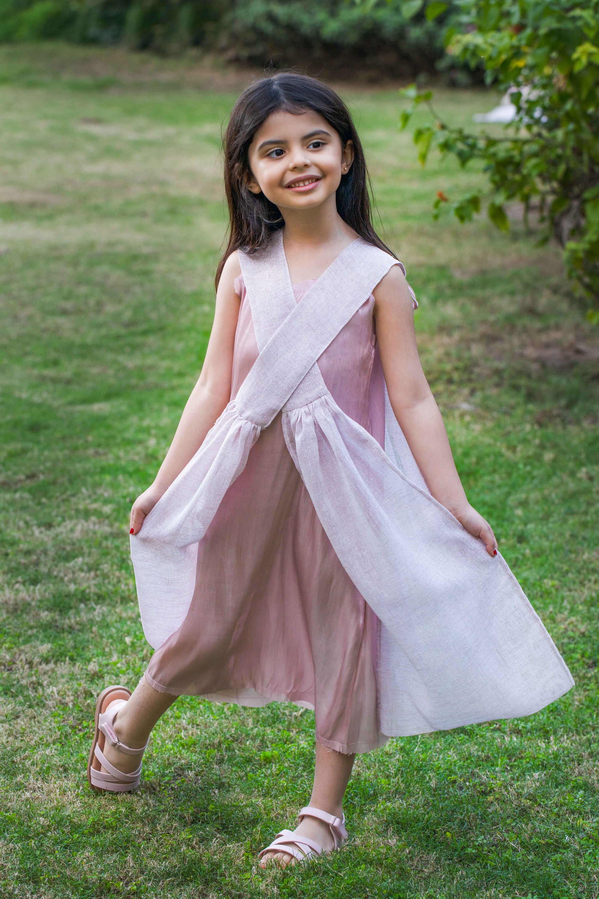 SPARKLY PINK ADJUSTABLE SLIP DRESS WITH A WOVEN CROSS-VEST OVERLAY